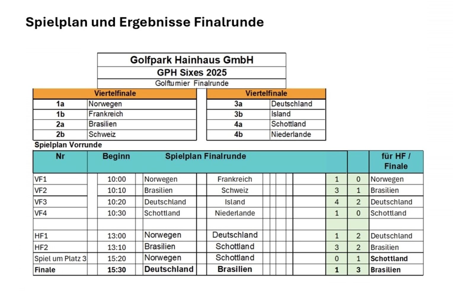Im Finale konnte sich Brasilien gegen Deutschland durchsetzen und auf dem 5. Loch den Sieg erkämpfen und ist damit der Hainhaus Sixes 2025 Sieger.
