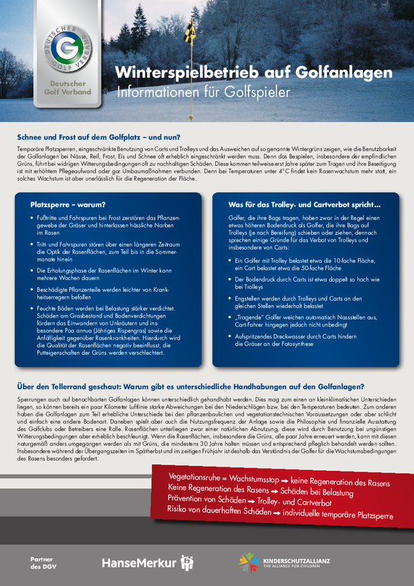 Die Hintergründe zum Winterspielbetrieb und zu Platzsperren bei Schnee und Frost sind ausführlich in den Informationen des Deutschen Golf Verbands (DGV) erläutert und können dort nachgelesen werden.