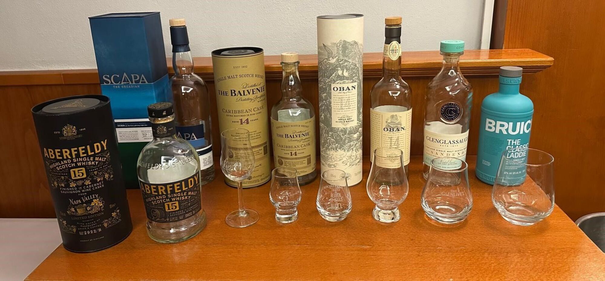 Ab 18:00 Uhr trafen die Gäste ein und nahmen an der großen Tafel Platz. Neben den „alten Hasen“ waren auch einige Neulinge unter den Gästen, die mit viel Interesse den Abend erwarteten. Das Thema des Abends lautete: „Eine Rundreise durch Schottland“. Die sechs Whiskys, die zur Verkostung ausgewählt wurden, haben alle zur Reifung zwischen drei und fünfzehn Jahren in diversen Eichenfässern verbracht. Es handelte sich ausschließlich um schottische Single Malt Whiskys. Von einer der nördlichsten Inseln Schottlands bis zum westlichen Teil von Islay verteilten sich die Destillerien, in denen die Whiskys gebrannt und gelagert wurden.